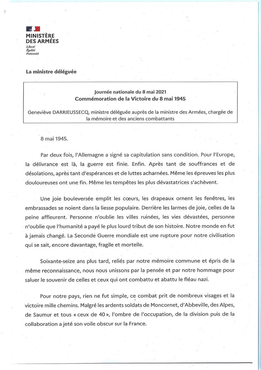 Un occasion de remercier officiellement l'engagement au delà du conflit qui permet de réaliser dans nos villages les différentes cérémonies du souvenir.
