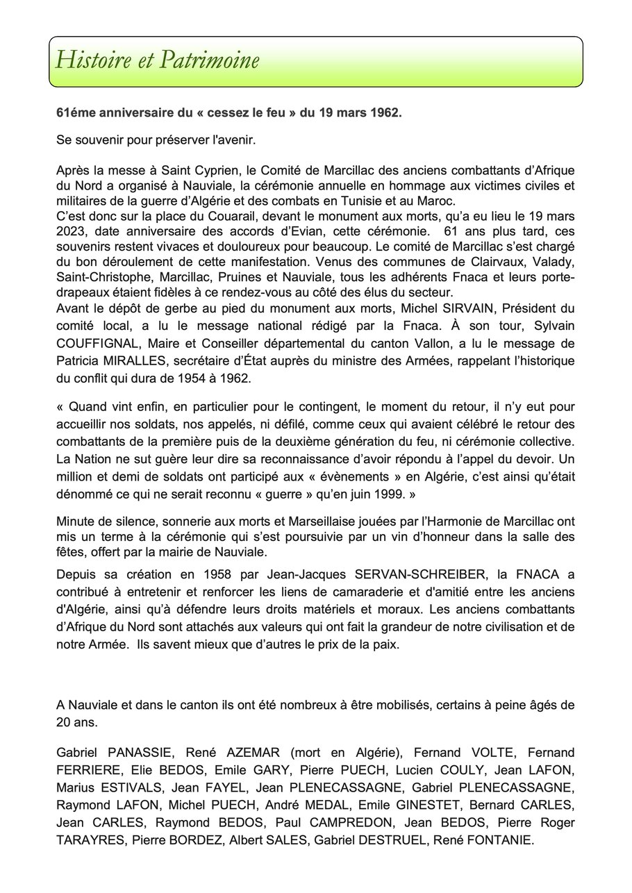Relisez "Nauviale Info" de 2023 dont un article était consacré à la FNACA :