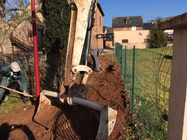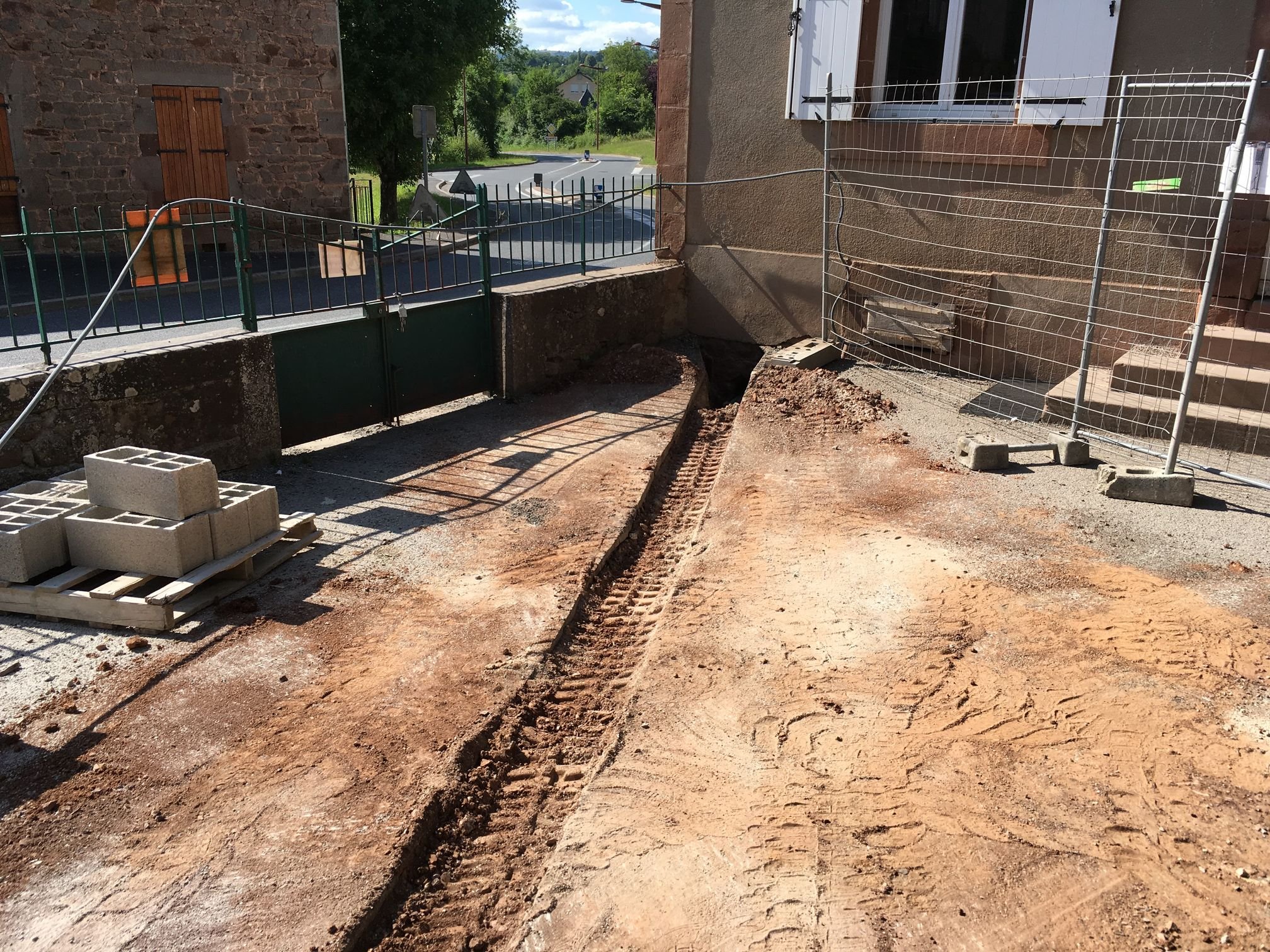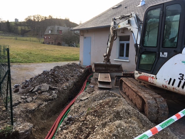 La tranchée et l'enfouissement des gaines pour la liaison électrique et réseau entre la salle des fêtes et la mairie vient d'être effectuée. Prochainement, le câblage va être réalisé afin d'apporter le réseau internet à la salle des fêtes depuis l'accès mairie. Ceci permettra des économies de fonctionnement avec une meilleure gestion des abonnements téléphoniques et électriques.