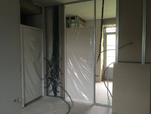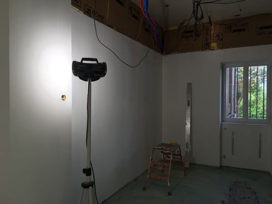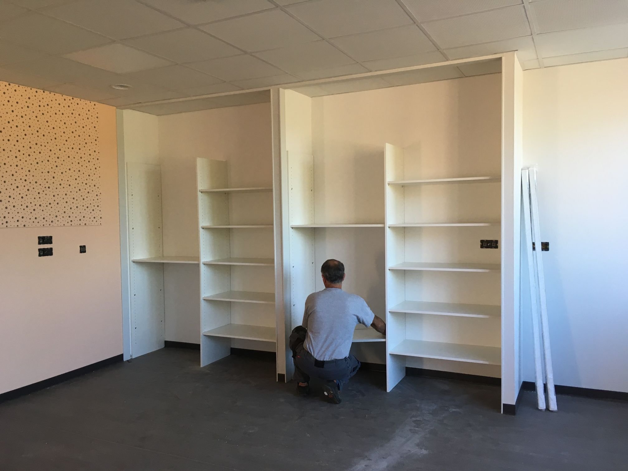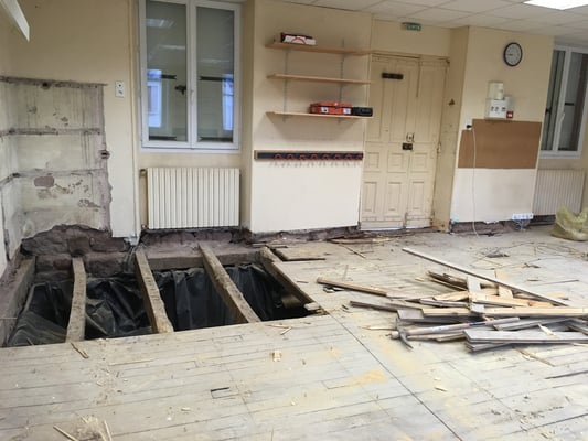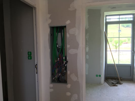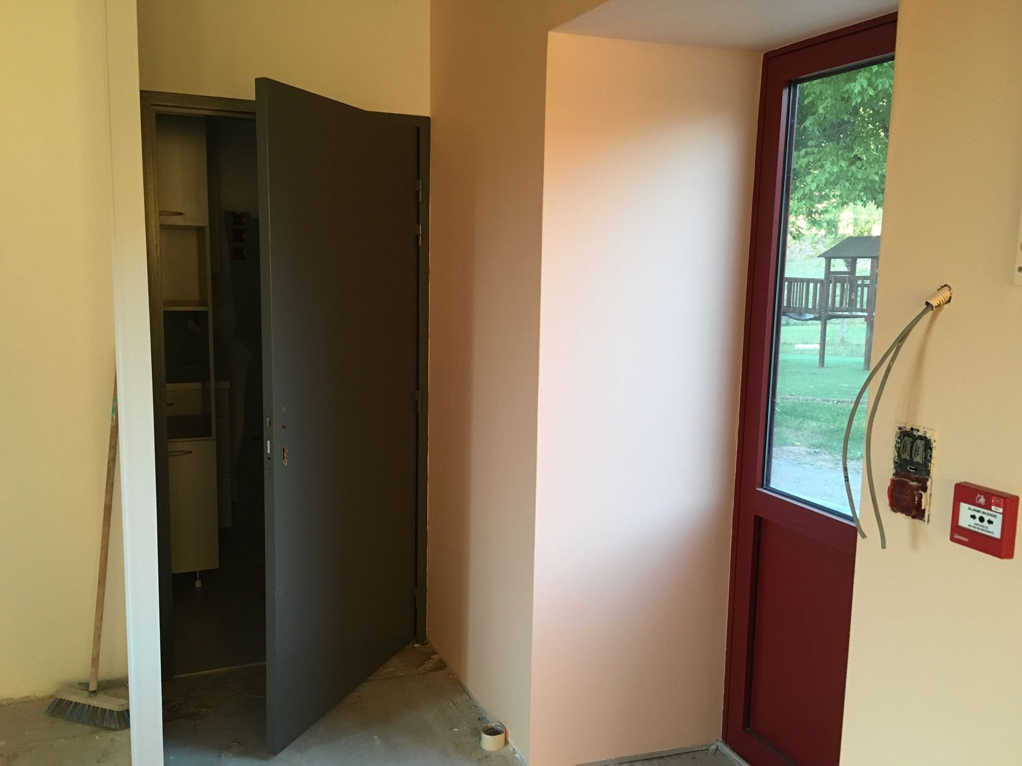 Avant son installation, des travaux de mise aux normes de l'installation électrique ont été réalisés et notre employé municipal Thierry a réalisé des travaux de rafraichissement des murs et des plafonds (peintures, tapisseries).
