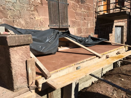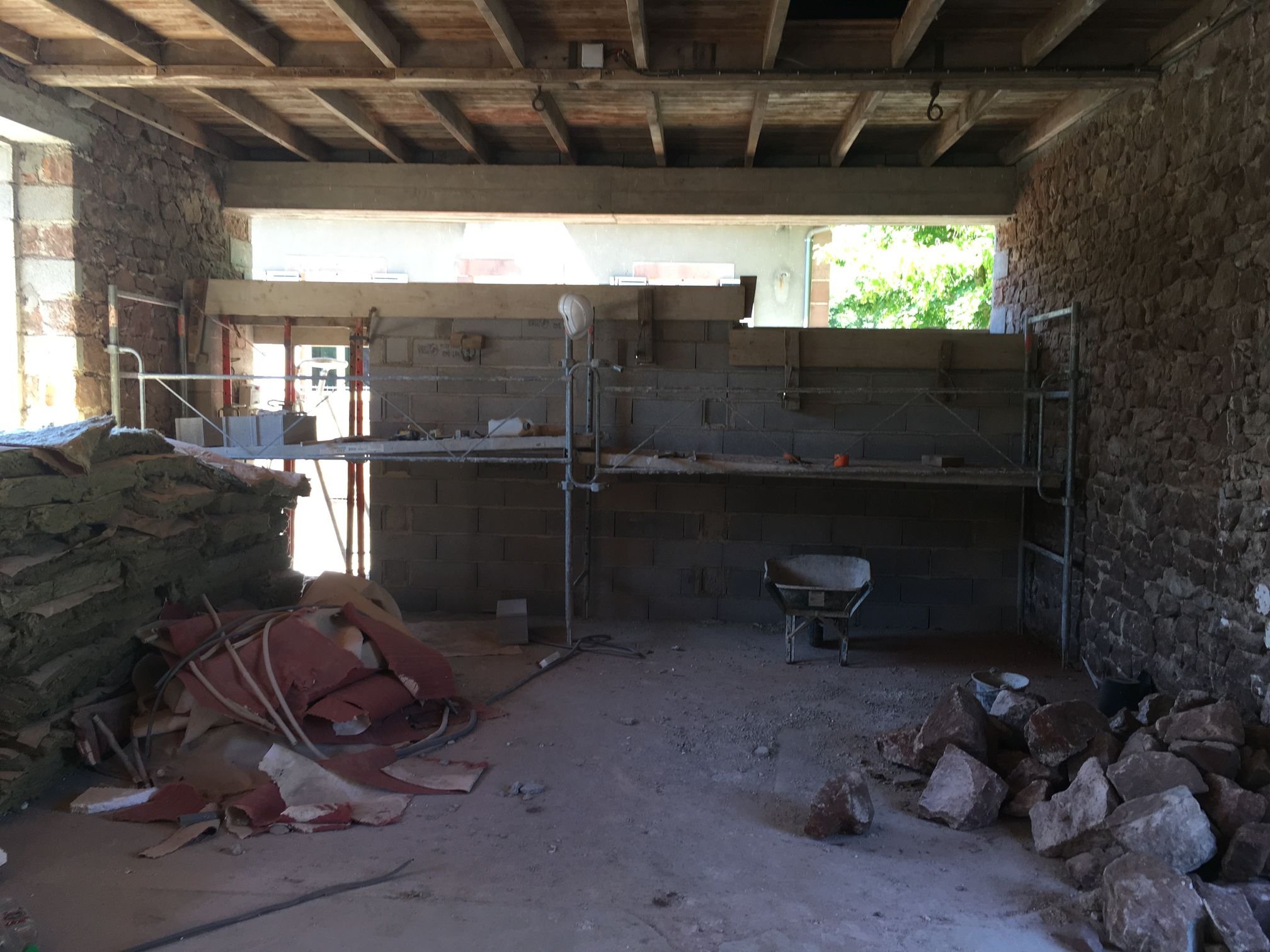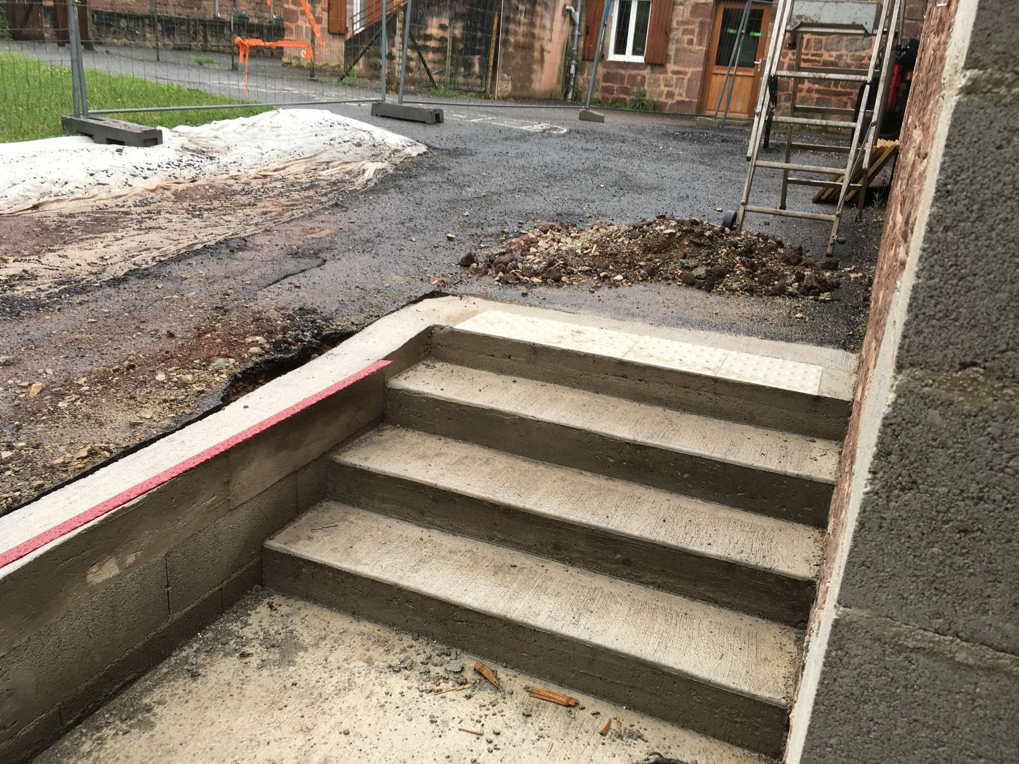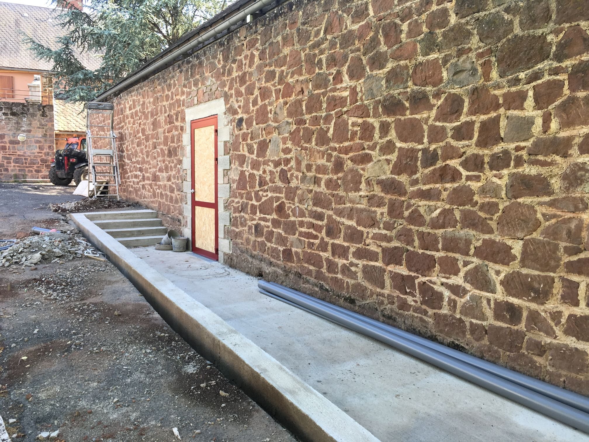 En ce début d'été 2019, l'entreprise de maçonnerie Joël CAPELLE est mobilisée sur l'accessibilité du site avec la réalisation d'une rampe d'accès neuve. La poursuite des travaux à l'intérieur a également repris avec l'isolation des murs (JC SANHES) et la remise en compatibilité des réseaux électriques (Benoit HYGONNET) et de chauffage (Pierre LAURENT).