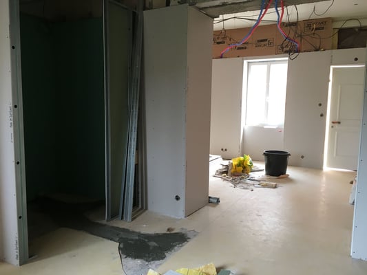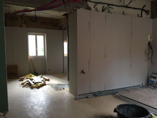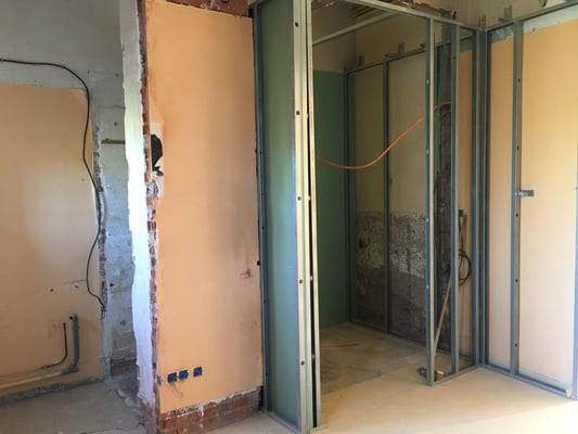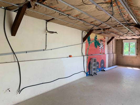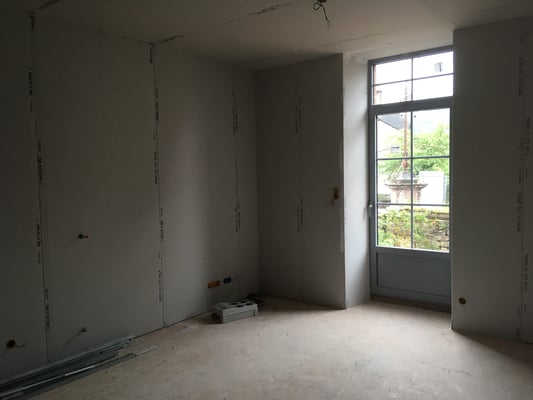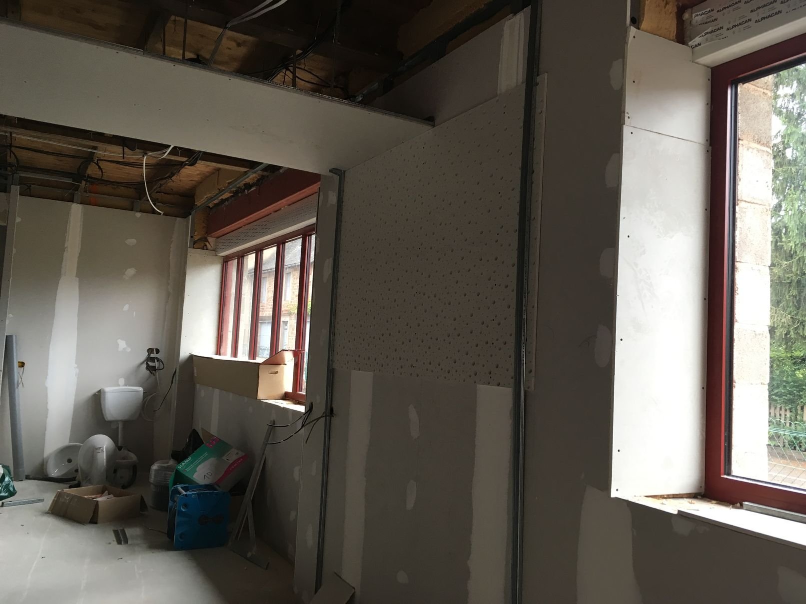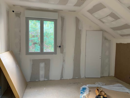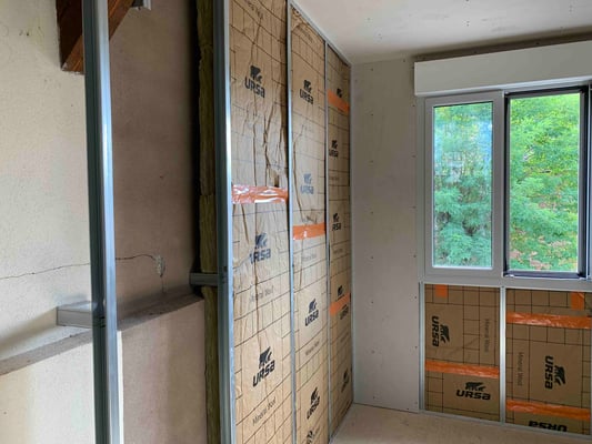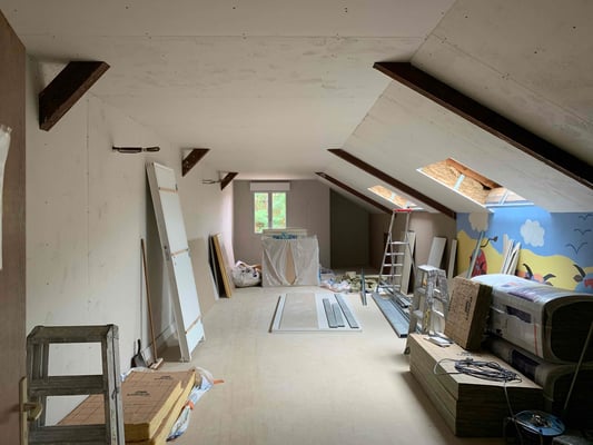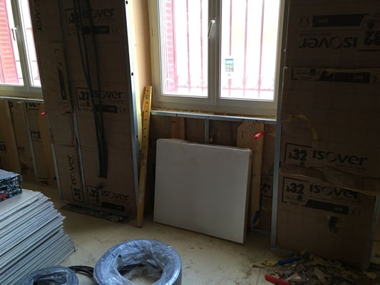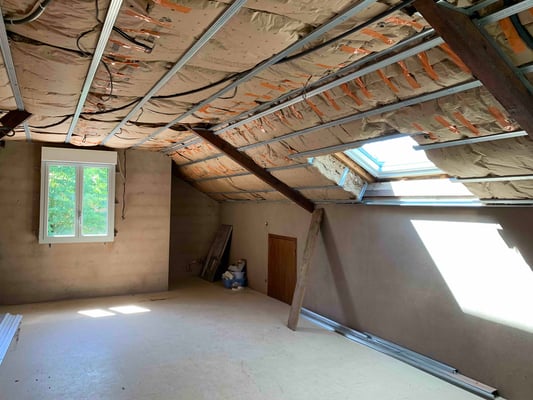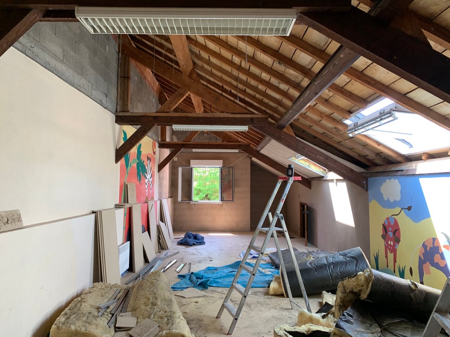 Après les travaux de pose de nouveaux velux, les travaux de remplacement de la fenêtre, la partie isolation et réfection des cloisons ont débuté le mercredi 9 juin.