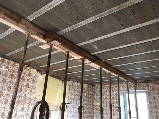 La société de chasse a participé à l'enlèvement des anciens éléments provisoires ainsi qu'à la remise en peinture du plafond.