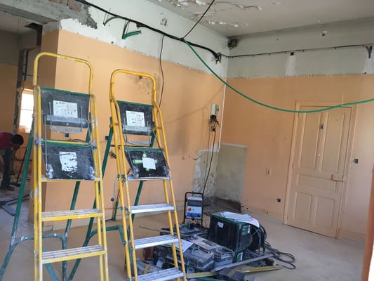 Après des premiers travaux de démontage des éléments obsolètes et un rafraîchissement réalisés par l'agent technique François BOU, les entreprises ont commencé à intervenir.