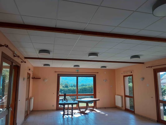 L'opération de rénovation des luminaires de la salle des fêtes a été menée. Elle a consisté à remplacer l'ensemble des lampes néon ou à incandescence par des dalles LED au standard moderne. Ceci est conforme à l'audit énergétique que la commune avait fait réalisé et permettra d'économiser un peu plus les dépenses d'électricité.