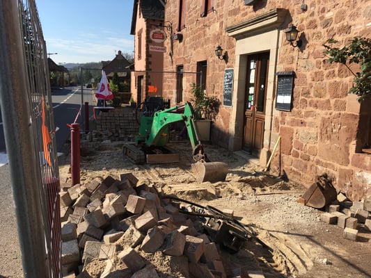 Suite à la demande des exploitants du multiple rural et devant le constat que le système d'évacuation ancien des eaux grasses du restaurant était "bouché", nous avons décidé d'effectuer une remise en état totale du système situé dans le jardin avant sa connexion avec le réseau public allant vers la station de traitement des eaux usées.