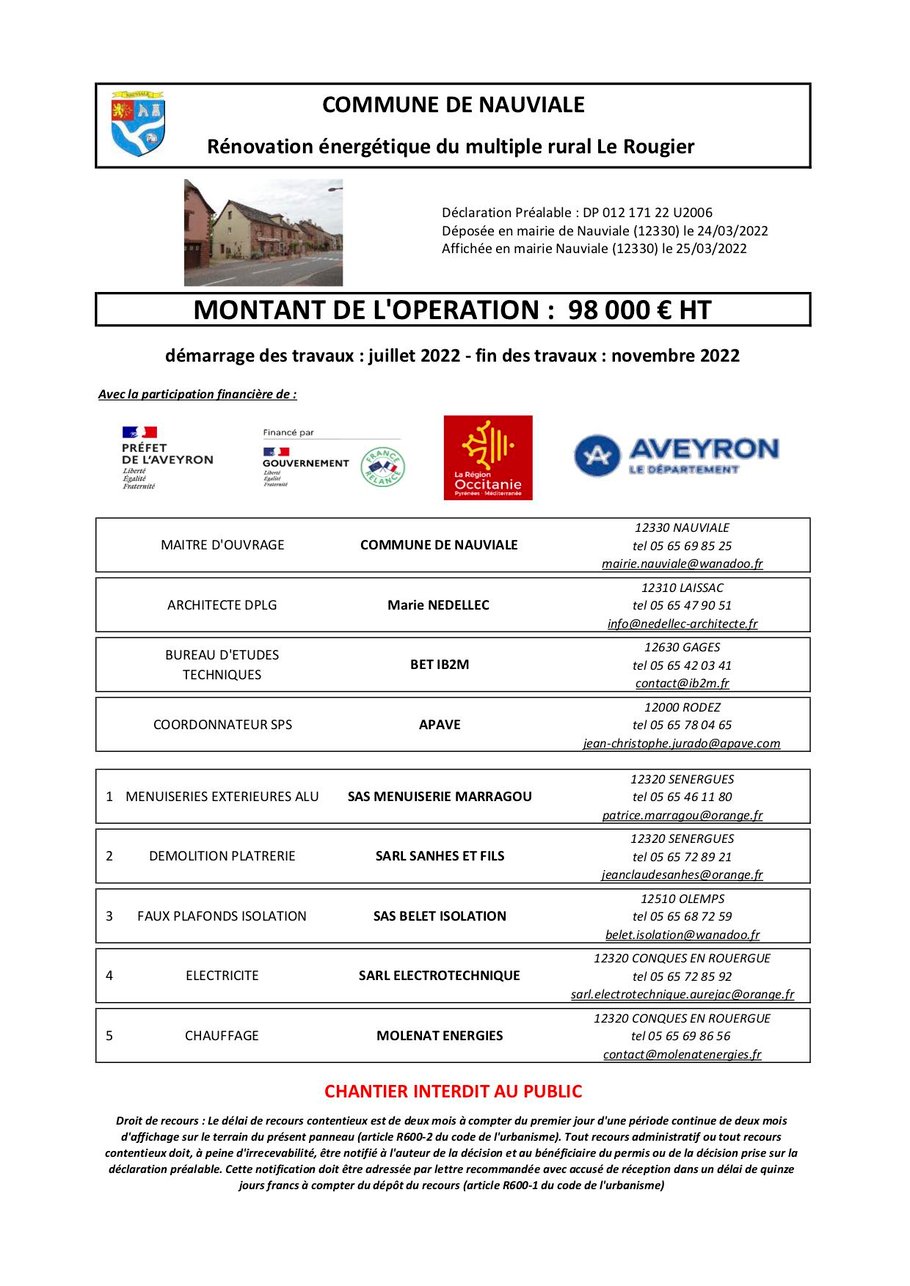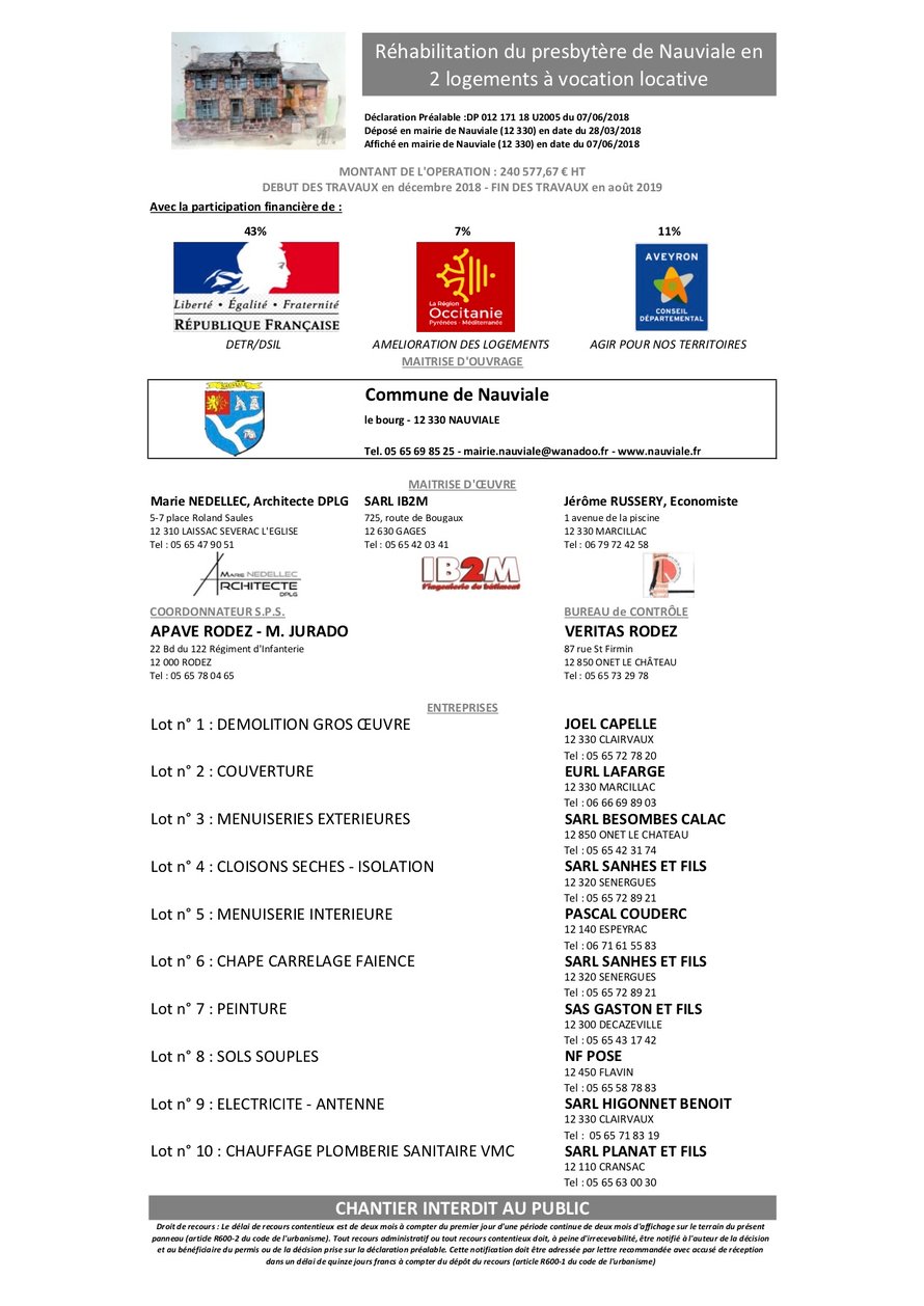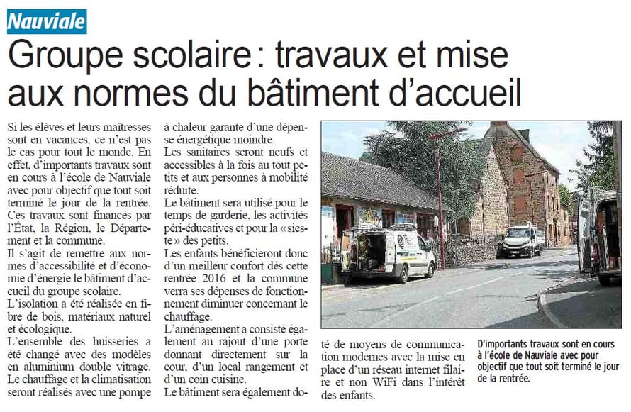 Cette opération majeure pour cette fin de mandat permettra de redonne vie au coeur du bourg de Nauviale avec 2 appartements de qualité en valorisant le patrimoine communal. Elle est financée par la Commune, l'Etat, la région Occitanie et le département de l'Aveyron.