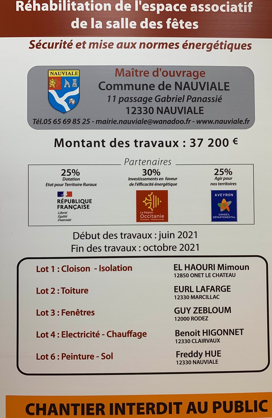 Ces travaux communaux d'un montant total de 37 200 euros TTC sont financés par la commune avec l'aide de l'Etat au titre de la DETR (25%), de la Région Occitanie (30%) et du Département de l'Aveyron (25%). Ils confirment le choix des élus de rénover l'ensemble des bâtiments communaux afin de réduire l'empreinte énergétique et de donner aux utilisateurs et aux associations des salles de qualité.