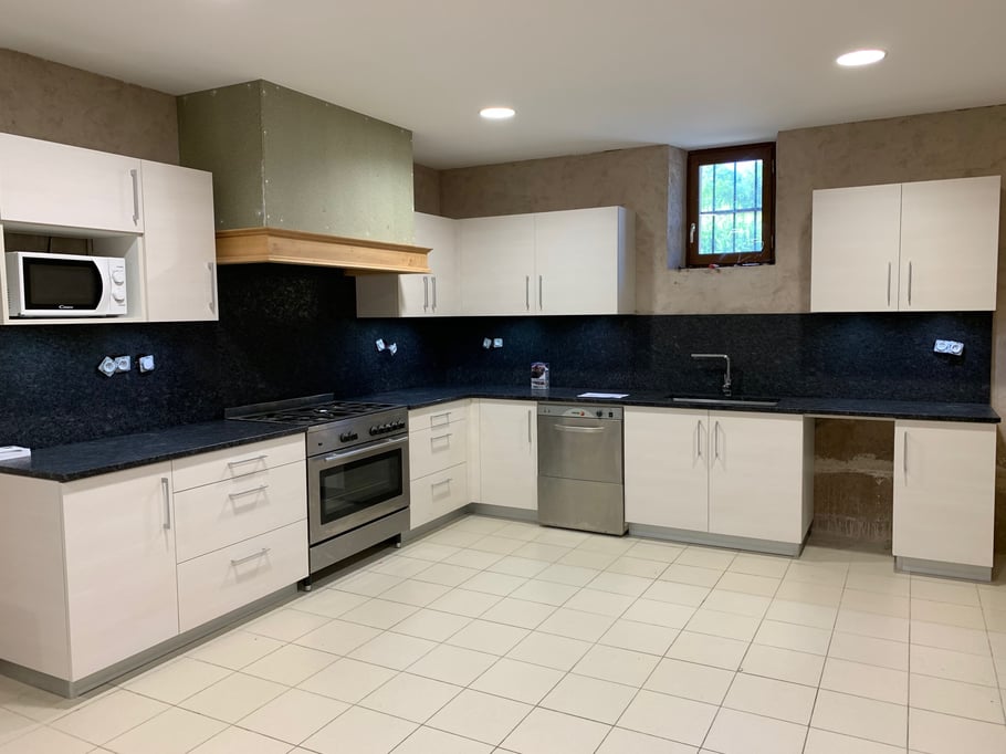 Les travaux initialement prévus pour avril ont du être décalés en juin 2020 en raison de la crise du COVID. Fin juin, ils sont quasi terminés avec la pose du plan de travail en marbre. Ce nouvel aménagement a été réalisé par l'entreprise Mouysset cuisines avec le concours de Benoit Hygonnet et Pierre Laurent respectivement pour l'adaptation des parties électriques et de plomberie.