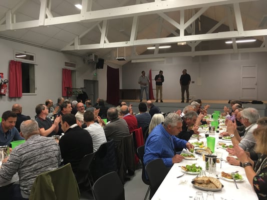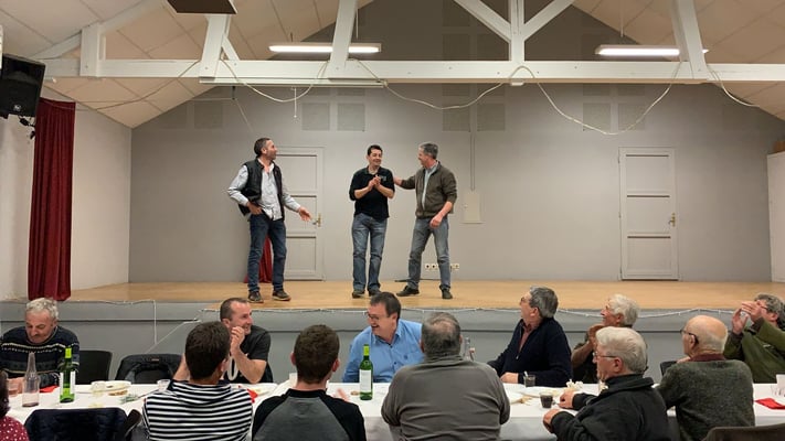 Le soir, la soixantaine de participants a pris un repas en commun préparé par le domaine des Planes à la salle des fêtes de Nauviale. Bonne humeur et histoires de chasse étaient au menu de cette soirée fort appréciée dans cette période de fête comme l'ont souligné par un mot amical les présidents !