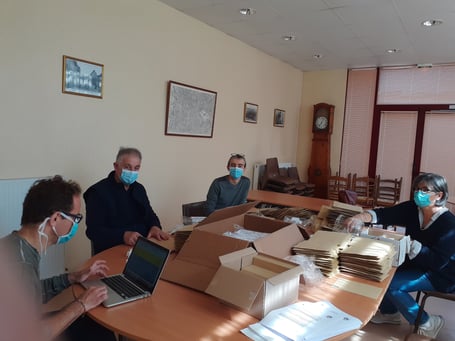 Une équipe de 5 conseillers s’est attelée à préparer la distribution en emballant chaque masque dans une enveloppe, en veillant au strict respect des conditions d’hygiènes (port du masque, gel hydroalcoolique pour la désinfection).