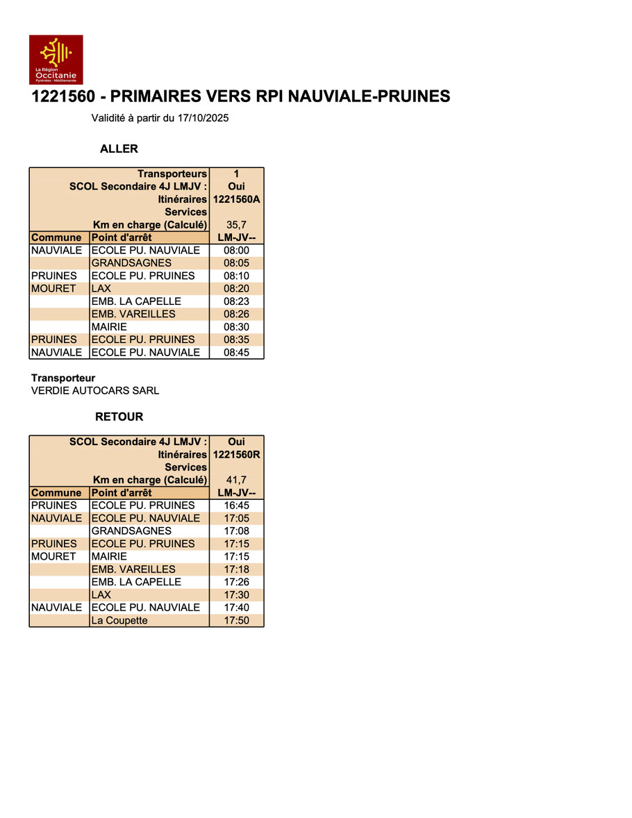 La liaison Nauviale Pruines est un transport scolaire géré par la Région.