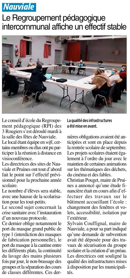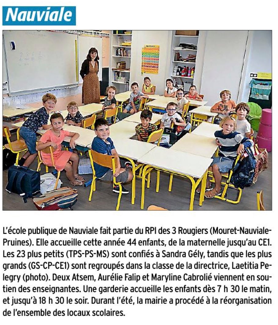 Les élèves présents de tous niveaux, sont pris en charge pédagogiquement par un instituteur remplaçant de l’éducation nationale. Du côté municipal, le personnel dédié aux écoles de Nauviale et Pruines est fortement mobilisé pour accompagner le personnel enseignant et s’assurer du respect du protocole sanitaire.
