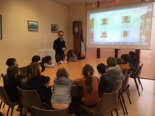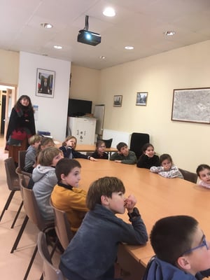 Accompagnés par leur institutrice Madame Lætitia Pelegry, ils ont été reçus par le Maire, Sylvain Couffignal et par Christiane Saules et Emmanuelle Zerbinati, conseillères municipales de la commune.