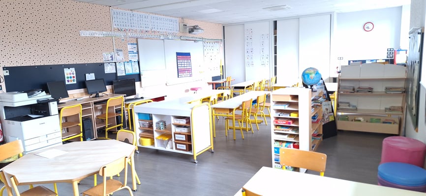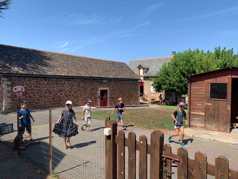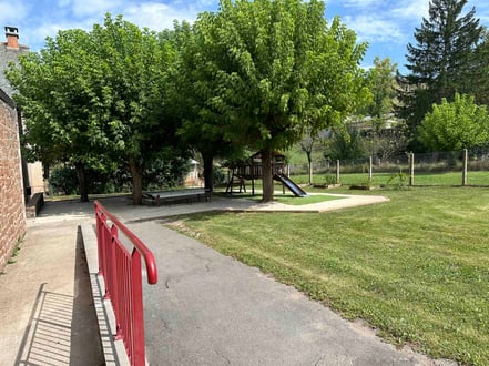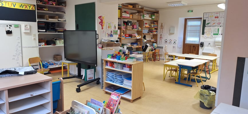la garderie et le repas s'effectuent dans la classe de maternelle (bâtiment du haut), les cours se déroulent dans la salle d'accueil et la récréation, en cas de mauvais temps, peut se faire dans l'ancienne classe primaire (bâtiment du bas), rénovée très récemment.