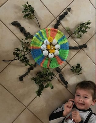 "Les élèves de la classe de maternelle de Nauviale et ceux de l'école de Pruines se sont associées dans un travail d'écriture/illustration de fables pour participer au concours organisé par le ministère de l'éducation national "Fête des Fables, faites des fables" afin de fêter le quatrième centenaire de la naissance de Jean de la Fontaine . Après avoir appris et découvert des fables de La Fontaine et d'Esope, les fabulistes en herbe de la classe se sont mis à écrire par deux une fable en partant d'une morale et de deux animaux interagissant entre eux. Vient alors le tour, des petits illustrateurs, avec l'aide de leur enseignante et de l'ATSEM, de se mettre au travail: découper et coller divers matériaux, modeler une tortue, une souris et un chat, pour créer une scène, réaliser un arbre et des animaux en relief.