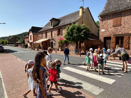 Une employée municipale accompagne les enfants pour la liaison école-navette bus matin et soir.