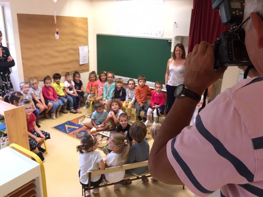 Vers 10H00, le correspondant Centre Presse retrouvait lui aussi le chemin de l'école avec la traditionnelle photo à paraitre le mardi 3 septembre dans la presse. Et pour la pause méridienne, c'était au tour de Laurence et Véronique d'emmener vers le restaurant le Rougier nos petits écoliers qui étaient attendus sur le pas de la porte par Sandrine.