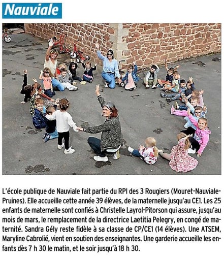Affluence de parents en ce 4 septembre 2023 pour la rentrée des classes du RPI et notamment sur le site de Nauviale. Après quelques pleurs et cris, le plus petits ont pu découvrir leur nouvel environnement. Les plus grands avaient hâte de revoir leur camarades.