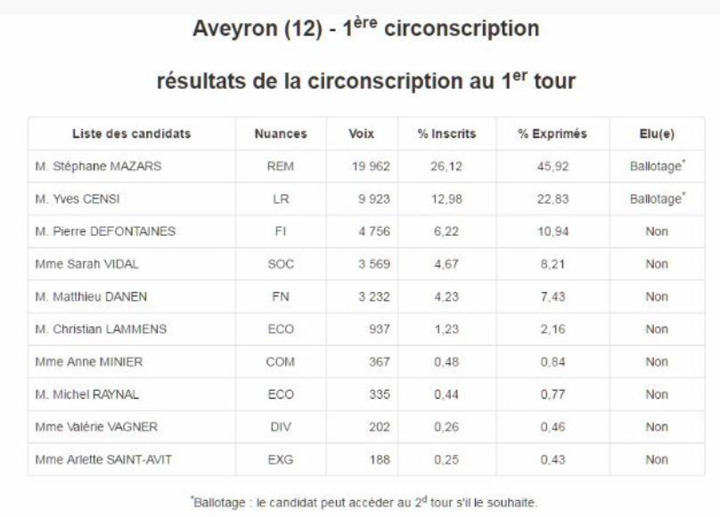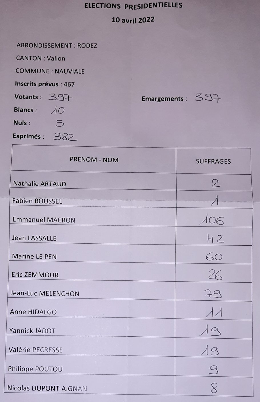 Les résultats de notre commune :