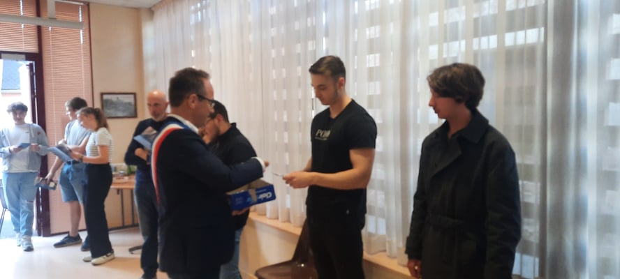 Il s'agissait de leur donner leur cartes électorales et un livret du citoyen car ces jeunes viennent d'atteindre leur majorité et n'ont jamais voté. Ce fut un moment à la fois solennel et très convivial.