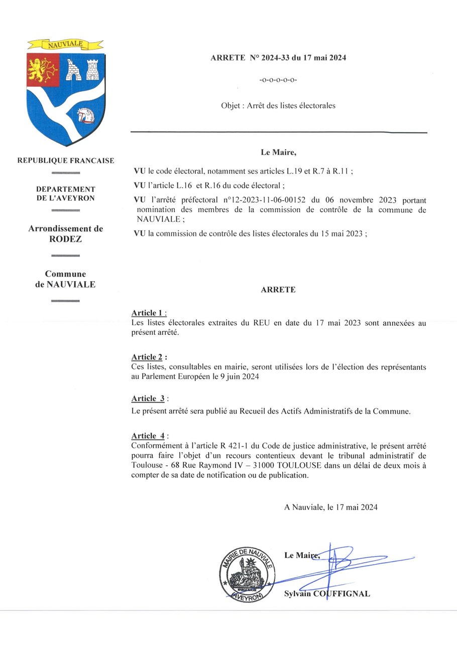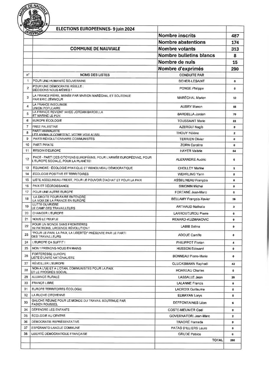 Le bureau de vote de Nauviale (salle du Conseil à la mairie) sera ouvert de 8h00 à 18h00.