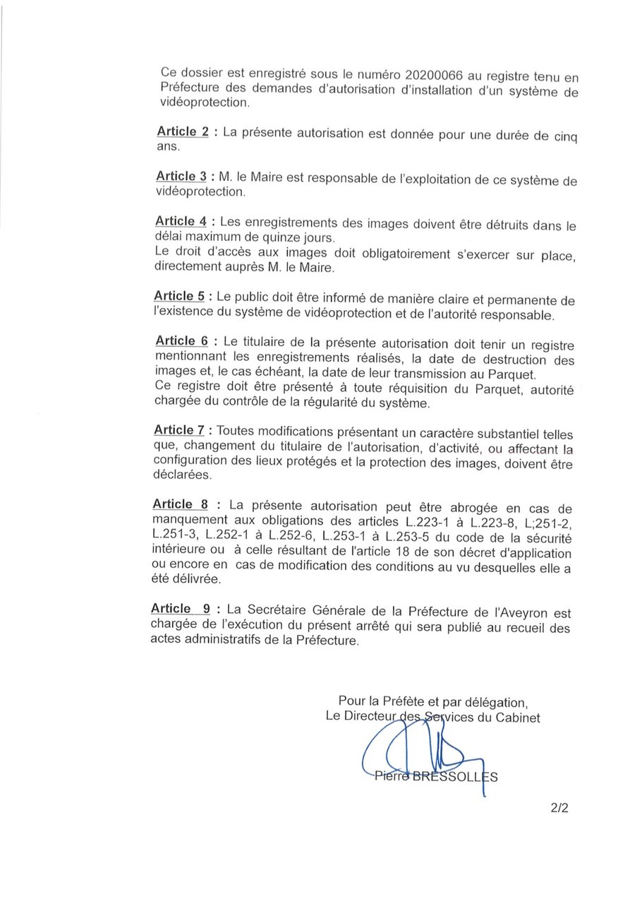 Vous pouvez téléchager ci dessous la délibération du conseil municipal validant l'installation de la vidéoprotection :