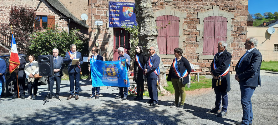 Le drapeau "La Moselle Déracinée" a été mis en place sur le mur de la mairie de Nauviale visible depuis la place principale dite du Courail afin de faire part au plus grand nombre de cet évènement reliant Nauviale et l'Aveyron à Fleury et la Moselle.