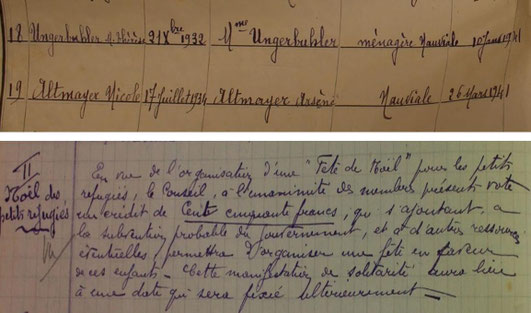 Nous avons retrouvé dans les archives municipales de Nauviale notamment dans le registre de l'école la présence des élèves Marie-Thérèse et Nicole en 1941 ou en 1944 avec l'attribution d'une subvention pour le Noël des petits réfugiés.