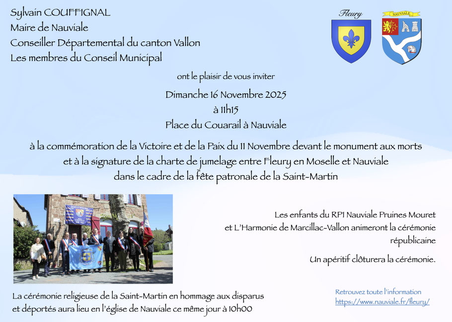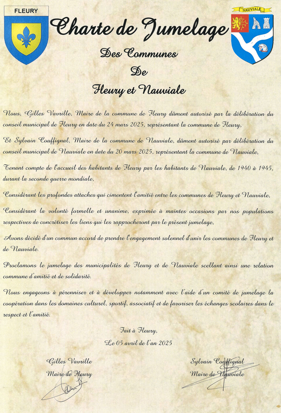 En ce début du moi d'avril 2025 et sous une météo radieuse, une délégation nauvialoise a honoré l'invitation de la municipalité de Fleury pour officialiser le jumelage entre les communes de Fleury et de Nauviale.