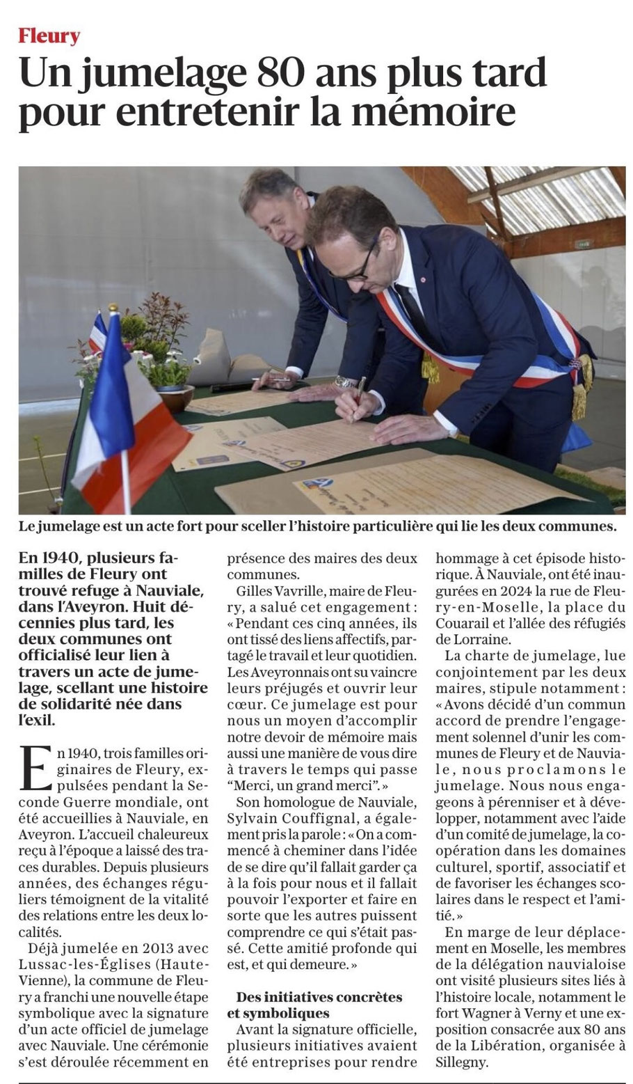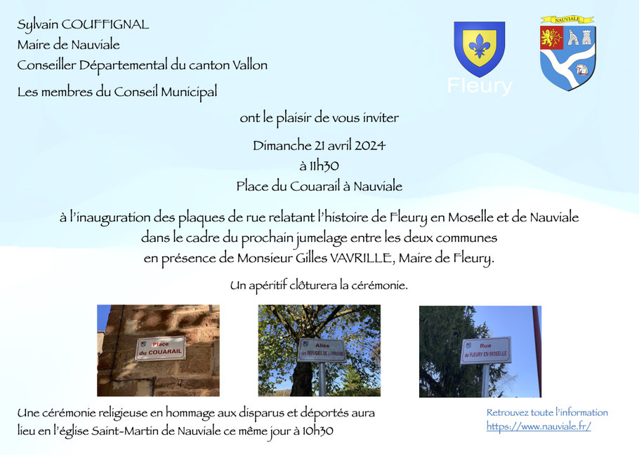 Depuis l'été 2021, certaines rues ou places de Nauviale ont été nommées avec des noms évoquant Fleury, la Moselle ou la Lorraine pour marquer notre attachement à cette histoire.
