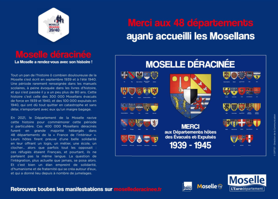 L'opération "Moselle déracinée" s'est déroulée du 28 au 31 octobre 2021. Celle ci était organisée par le département de la Moselle à l'occasion du 80ème anniversaire de l'évacuation et de l'expulsion des Mosellans et de l'accueuil de ces 400 000 déracinés dans 48 départements français dont l'Aveyron (évènement reporté d'un an en raison de la crise sanitaire).