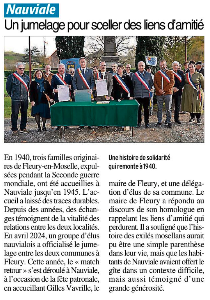 Cette exode forcée dont une des destinations fut Nauviale pour 3 familles, a permis de tisser des liens ineffaçables entre nos deux communes.