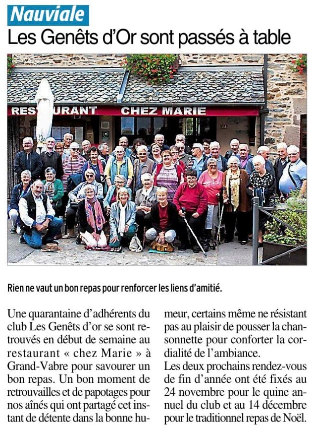 Les Genêts d'Or est une association qui propose des rencontres multiples et variées pour les aînés de Nauviale et des communes locales.
