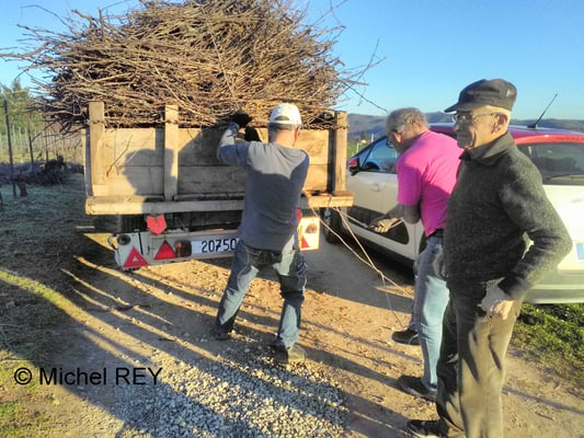 Ce lundi 24 Février 2020, une quinzaine de personnes, essentiellement des Genêts d’or, encouragés par leur présidente Alice Lagarrigue, toujours à la pointe « du combat », se sont retrouvées à la vigne de Christine Pouget pour ramasser les sarments et pour les lier en fagots. Les novices dans cet art comme les plus avertis ont œuvré sous le soleil, jusqu’à ce que le chargement soit enlevé grâce à Jeany Pègues.