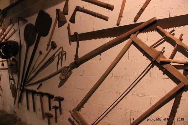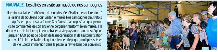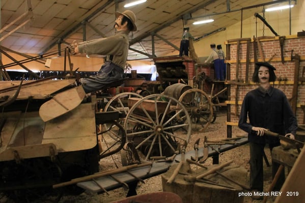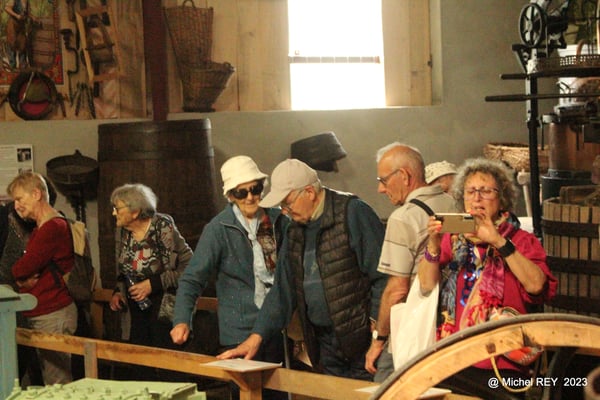 Après le repas pris sur place, nous avons pu découvrir, au travers d’une visite commentée par Guy, le musée : « Nos campagnes autrefois », l’activité des familles paysannes dans nos régions. Étaient exposés le matériel agricole, le mobilier de la cuisine, de la chambre, de l’école …