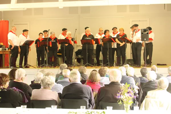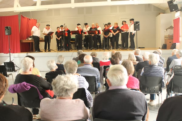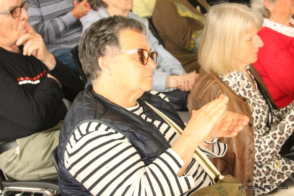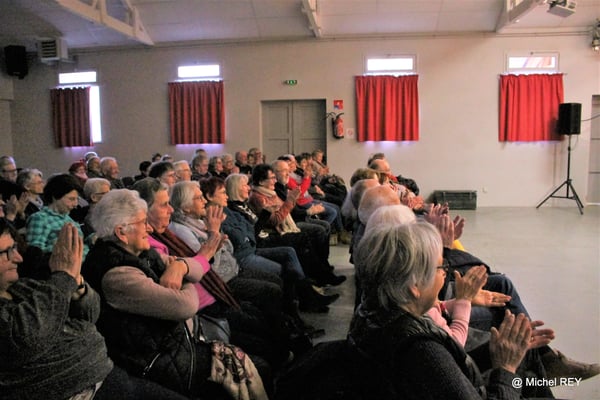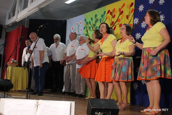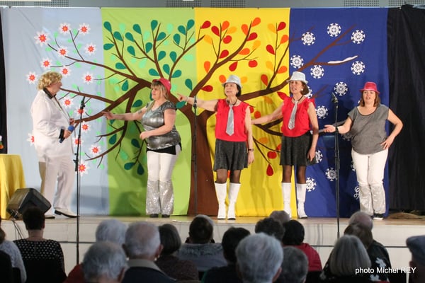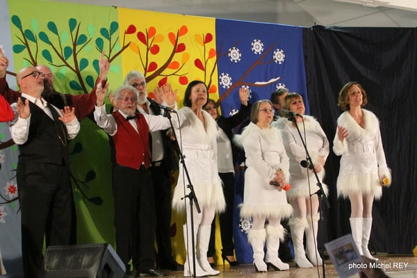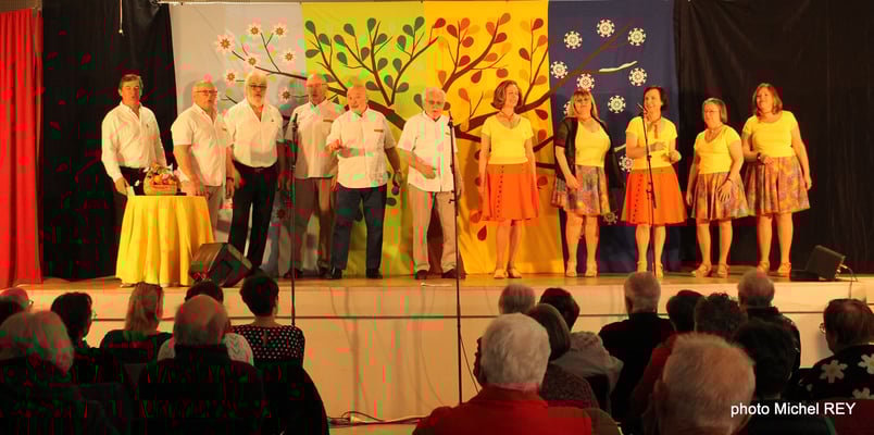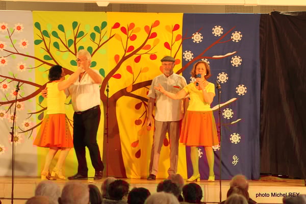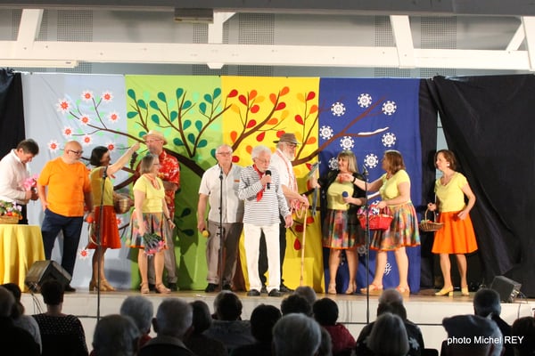Ce fut une belle séance car cette troupe nous présentait un éventail de chansons éclectiques sur le thème des saisons. Certes, Il y avait des chansons légères comme « Le Petit Bikini » ou « Le Gibier Manque » de S. LAMA mais ils avaient choisi, également un répertoire de chansons à texte comme « Au printemps » de J. BREL ou « Les marchés de Provence » G. BECAUD.