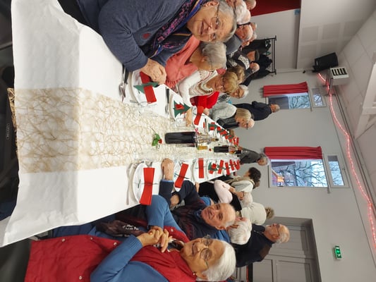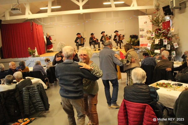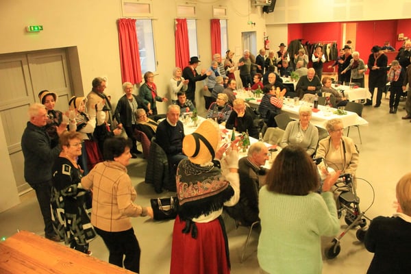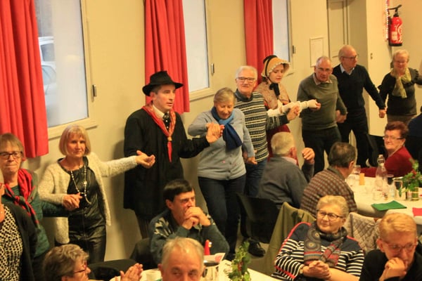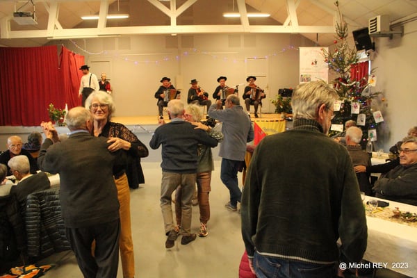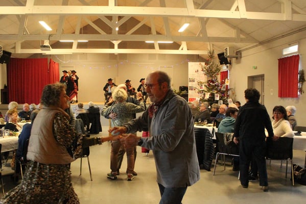 Samedi 7 décembre, les adhérents du club « les Genêts d’Or »se sont retrouvés à la salle des fêtes autour d’une table joliment décorée par Alice Lagarrigue pour partager le repas de Noël. Il était préparé et servi par le restaurant « le Rougier « . Les Castellous de Senergues ont animé l’après-midi avec des danses et des chants au son de l’accordéon et de la cabrette. Les plus hardis ont pu danser « la caille » et faire une valse.