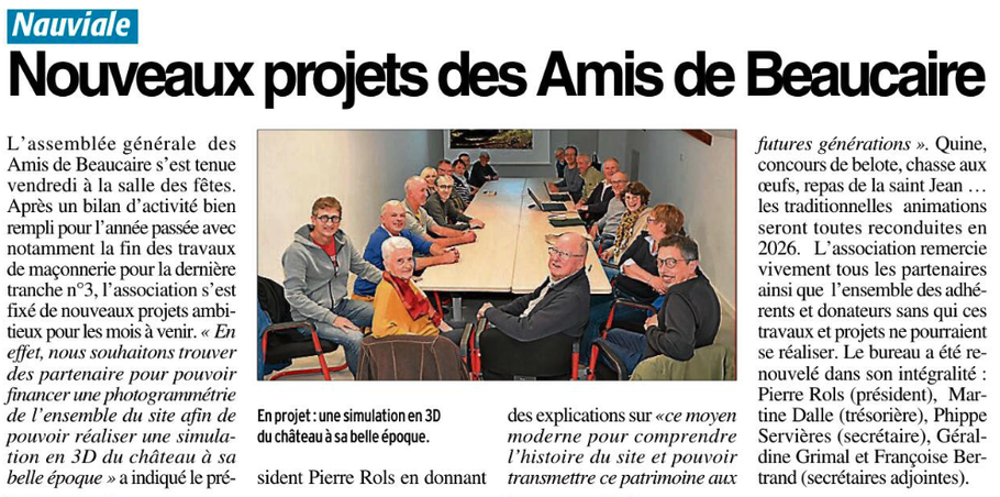 L'assemblée générale de l'association des amis de Beaucaire s'est tenue le vendredi 3 décembre 2021 à la salle des fêtes de Nauviale.