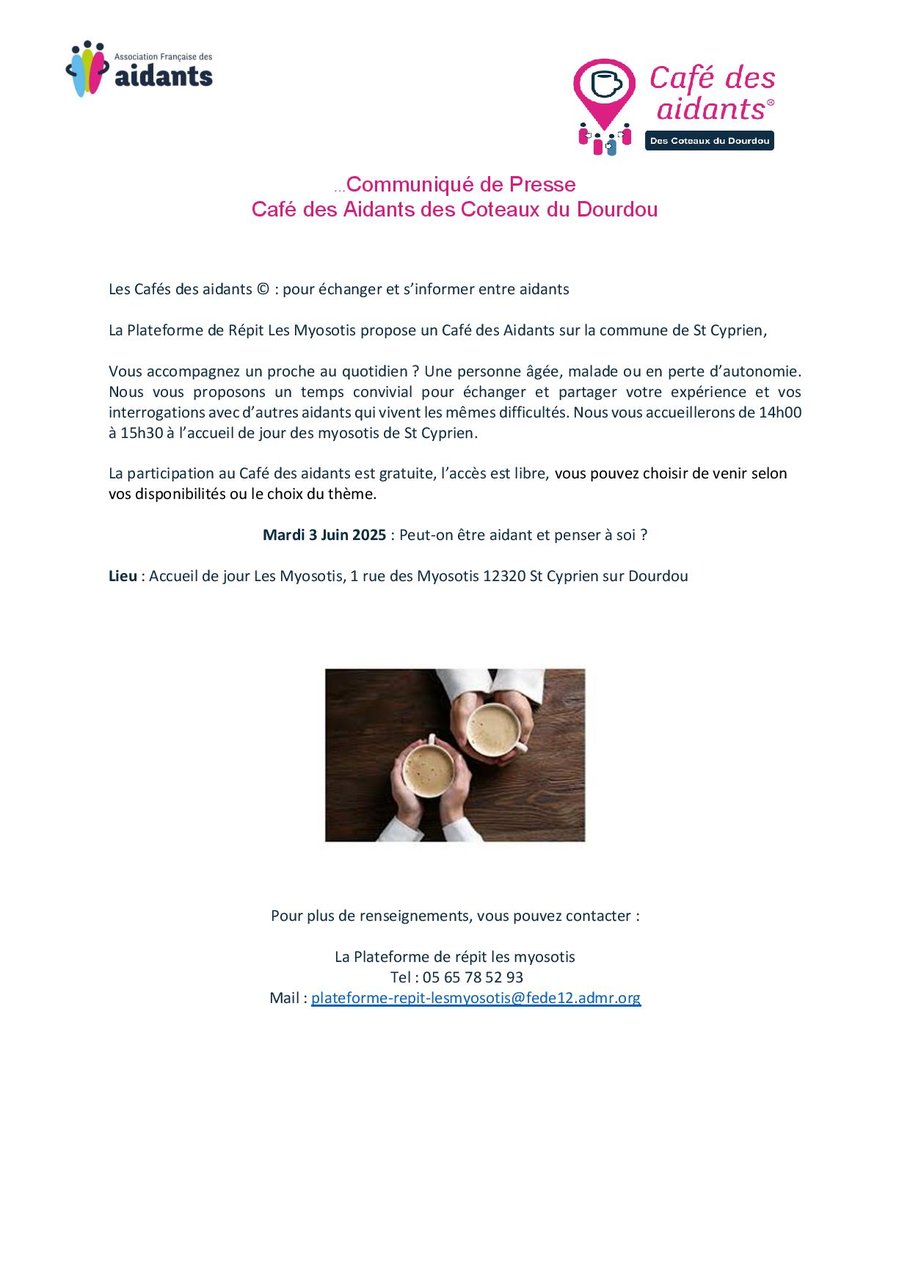 - Jeudis de 10h à 12h Accueil de jour des Myosotis Chemin du Fraysse- Saint Cyprien 12320 CONQUES EN ROUERGUE.