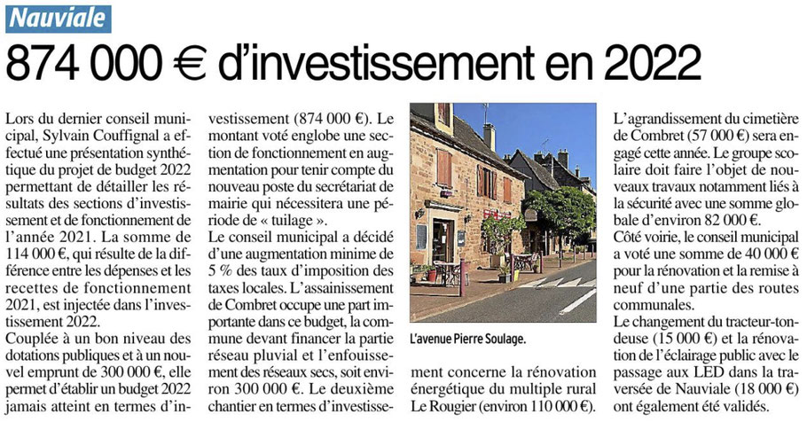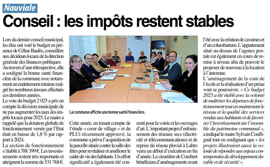 Retrouvez ci dessous l'intégralité de l'article de presse dédié au vote du budget par le conseil municipal.