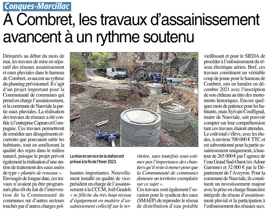 Dans le cadre de l'amélioration des infrastructures, l’important projet d'enfouissement des réseaux secs (électricité et télécommunications) et de reprise du réseau pluvial à Labro est en préparation en lien avec le SIEDA, avec un début des travaux attendu pour la fin de l'année. Par ailleurs, le cimetière de Combret bénéficiera d'aménagements avant l’été avec la création de cavurnes et d'un columbarium, répondant ainsi aux besoins des familles.