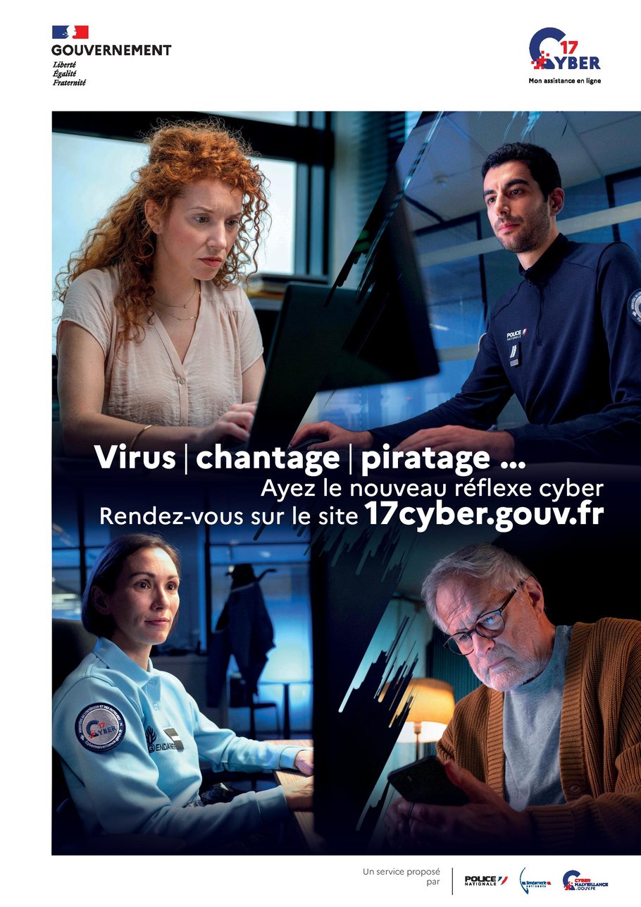 La Police nationale, la Gendarmerie nationale et Cybermalveillance.gouv.fr s’associent et lancent conjointement le site 17Cyber : https://17cyber.gouv.fr/