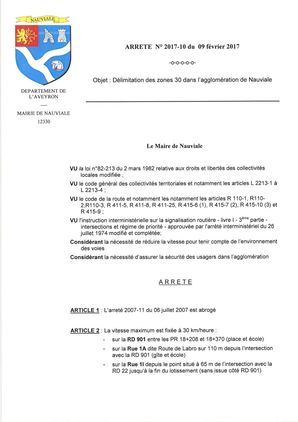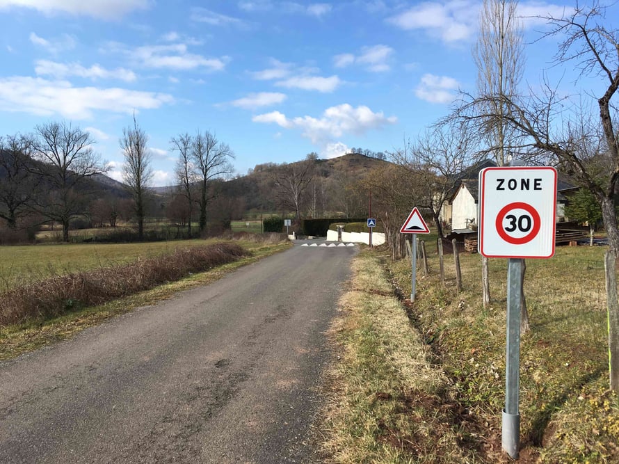 Une nouvelle zone 30 est apparue dans le village de Nauviale. Il s'agit en effet de protéger les habitants du lotissement de Malrieu Bas. Cette zone a été crée dans le cadre de la remise aux normes des 2 ralentisseurs présents dans la rue.