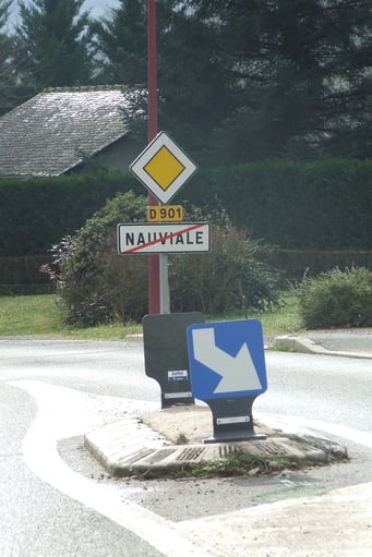 Les 6 panneaux de signalisation des 3 terre-pleins de la traverse du bourg de Nauviale ont du être remplacés.