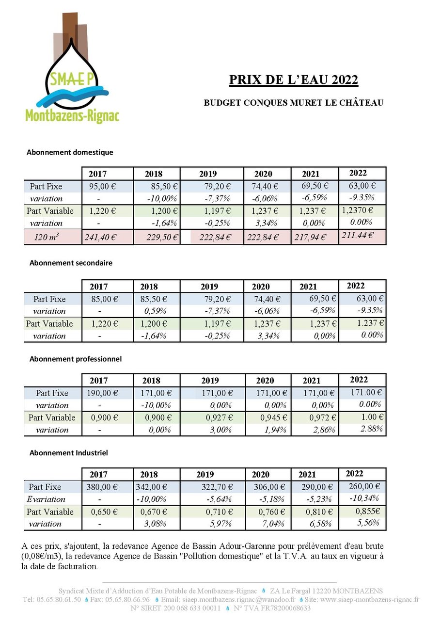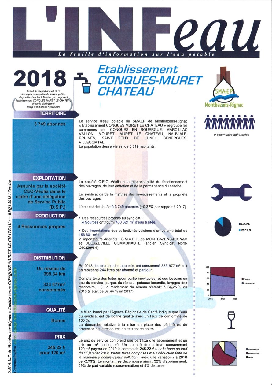Dans le but de sécuriser et de garantir un volume d’eau nécessaire pour l’ensemble des abonnés du syndicat de Conques Muret le château, celui-ci a contractualisé un achat annuel d’eau au syndicat de Montbazens Rignac.