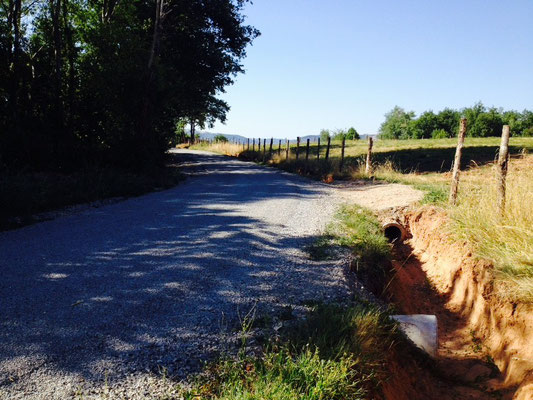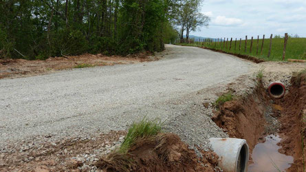 Il s'agit de travaux routiers sur notre commune réalisés par la communauté de communes. En effet, nous avions demandé cette prestation en commission route sur ce secteur afin d'assainir la voirie et ainsi éviter les dégradations fréquentes dues à l'eau qui ne s'évacuait pas correctement. Au programme : création de fossés et de passages busés.