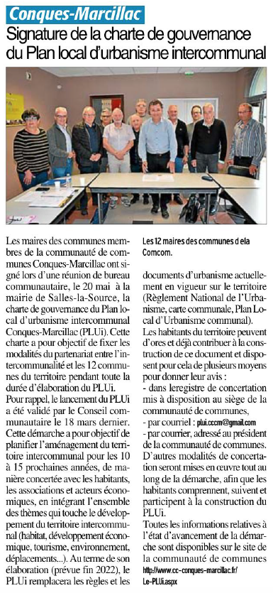 Faisant suite au Conseil communautaire du 4 février dernier, le PLUi Conques-Marcillac a été approuvé. Les mesures nécessaires à l’exécution de la délibération d‘approbation ont été réalisées (publication sur le Géoportail de l’urbanisme et transmission à la Préfecture); le PLUi est exécutoire depuis le 20 février dernier.